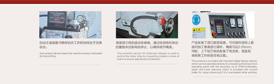 HJD-MB2540B 產品配備了進口數顯裝置,可在操作面板上直接對加工厚度進行操作,精度可達0.05MM;