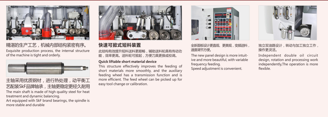 全新面板設(shè)計(jì)更直觀,更美觀,變頻送料,速度調(diào)節(jié)方便。快速可掀式短料裝置,獨(dú)立雙油路設(shè)計(jì),轉(zhuǎn)動(dòng)與加工獨(dú)立工作操作更靈活。